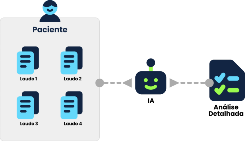 Reduza drasticamente o tempo de leitura e análise de laudos prévios de pacientes, agilizando sua conduta e otimizando a tomada de decisões.